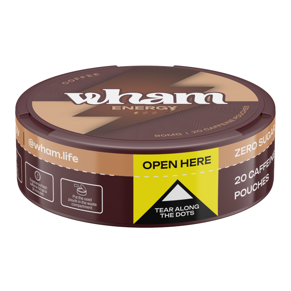 Coffee flavoured Wham Energy Caffeine Pouches give you the rich, roasted flavored caffeine experience paired with a smooth caffeine kick — clean, quick, and crash-free.